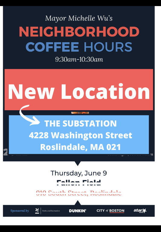 Agenda includes Councilor Kendra Hicks (just elected as the councilor for District 6), 104 Walter Street Update with Habitat for Humanity, Transportation/Mobility/ Infrastructure Committee report and discussion, Roslindale Day Parade afterparty at Fallon Field. The link for registration will be posted soon.